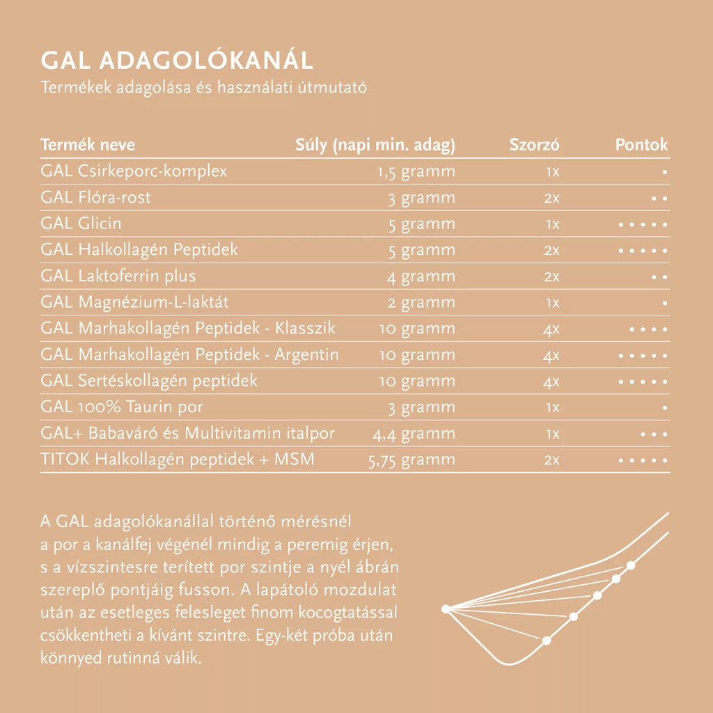 Fogyasztási javaslat: Napi 1,5 g (= 3 ml, avagy kb. 1 enyhén púpos teáskanálnyi) fogyasztását javasoljuk. Bármikor bevehető, étkezéskor vagy függetlenül, de legjobb sportolás előtt fél-1 órával, illetve, ha van problémás ízülete, akkor annak igénybevétele előtt fél-egy órával javasoljuk bevenni (tehát például egy nagyobb séta előtt). Reggel éhgyomorra is szedhető. Érdemes kevés vízben vagy egyéb folyadékban feloldva fogyasztani, mert bár az íze enyhe, de nem egy élvezet, azaz jobb egy húzásra.